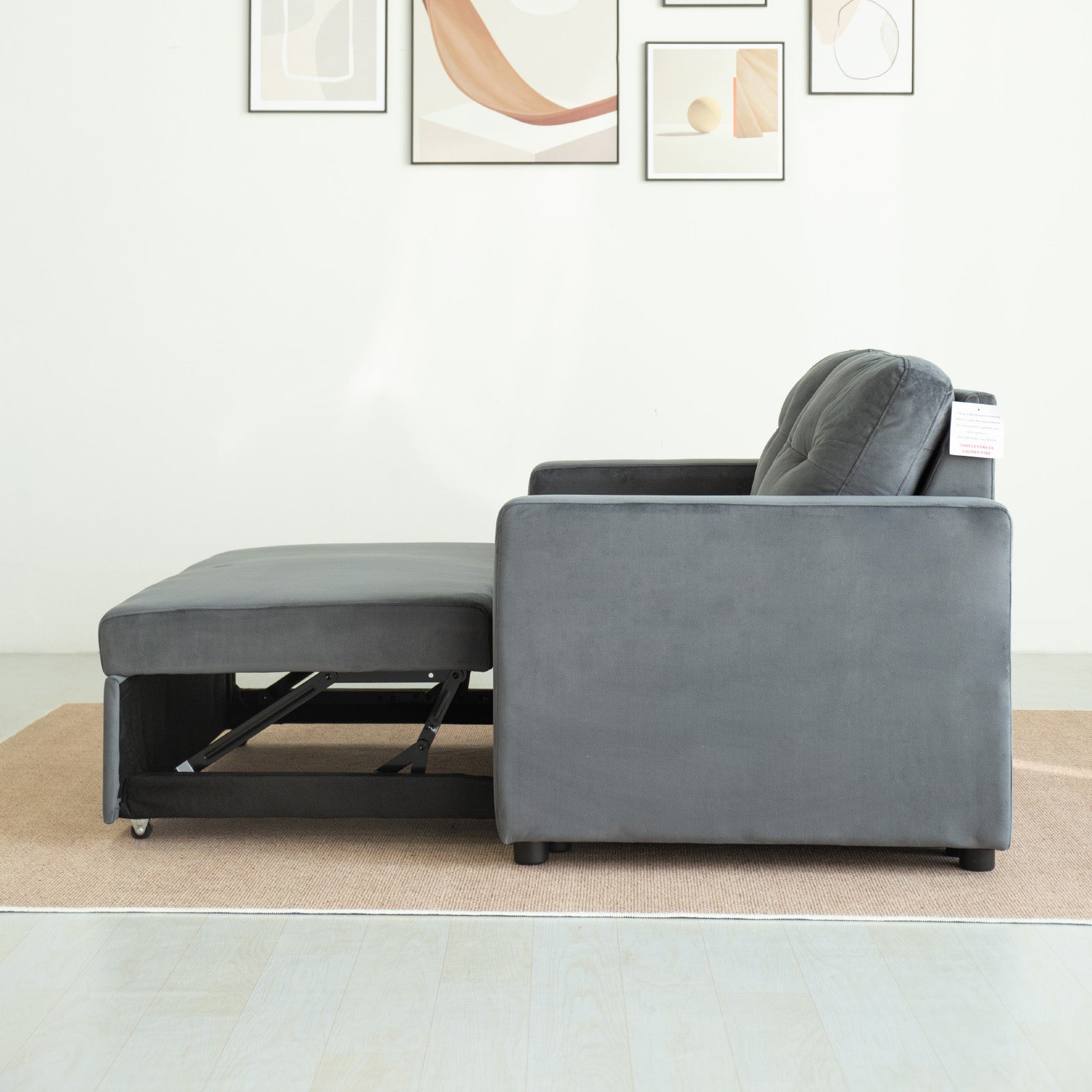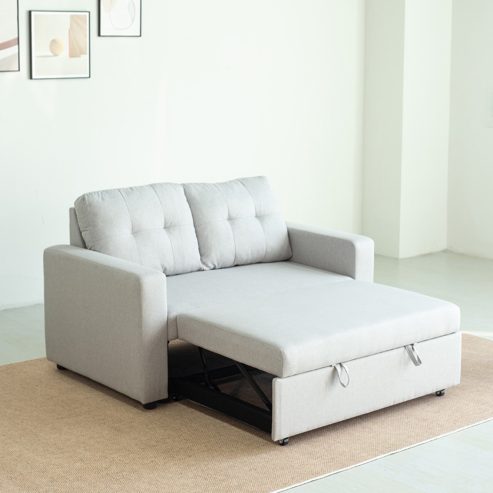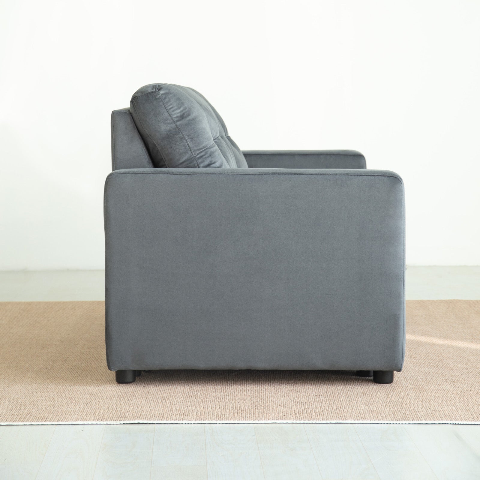 The wide, plush seats and tufted backrest deliver a modern yet timeless aesthetic, while the sturdy wooden frame ensures it’s built to last. When it’s time to unwind or host guests, the sofa transforms seamlessly into a cosy bed - no fuss, just comfort.