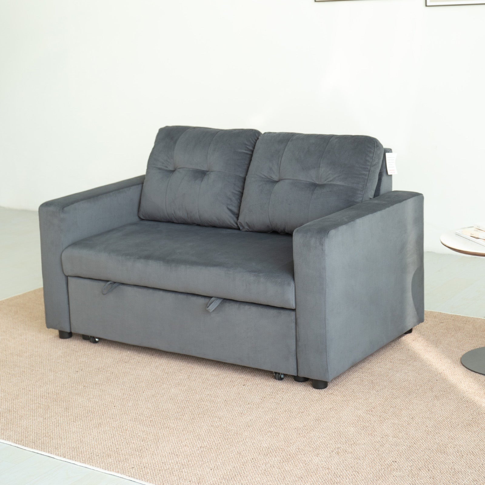 2-Seater Fabric Sofa Bed with Tufted Backrest – Linen or Velvet Options