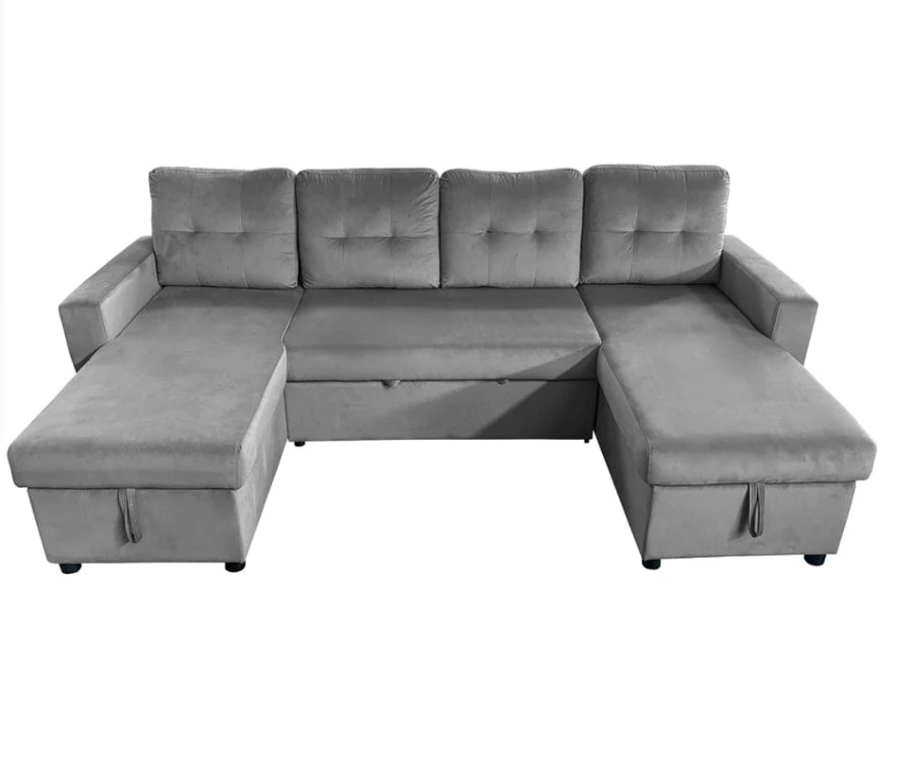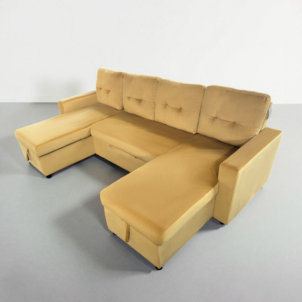 8 Seater Velvet U shape Sofa Bed with Chaise & Storage