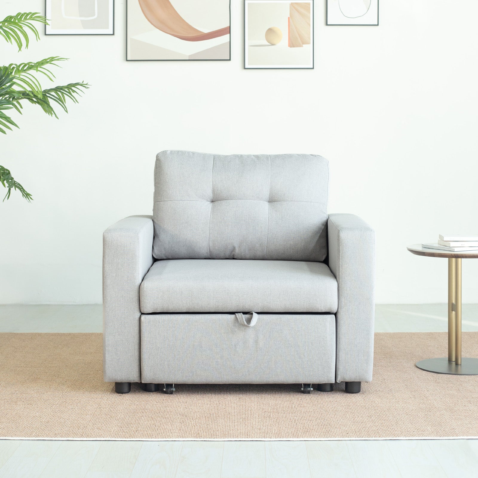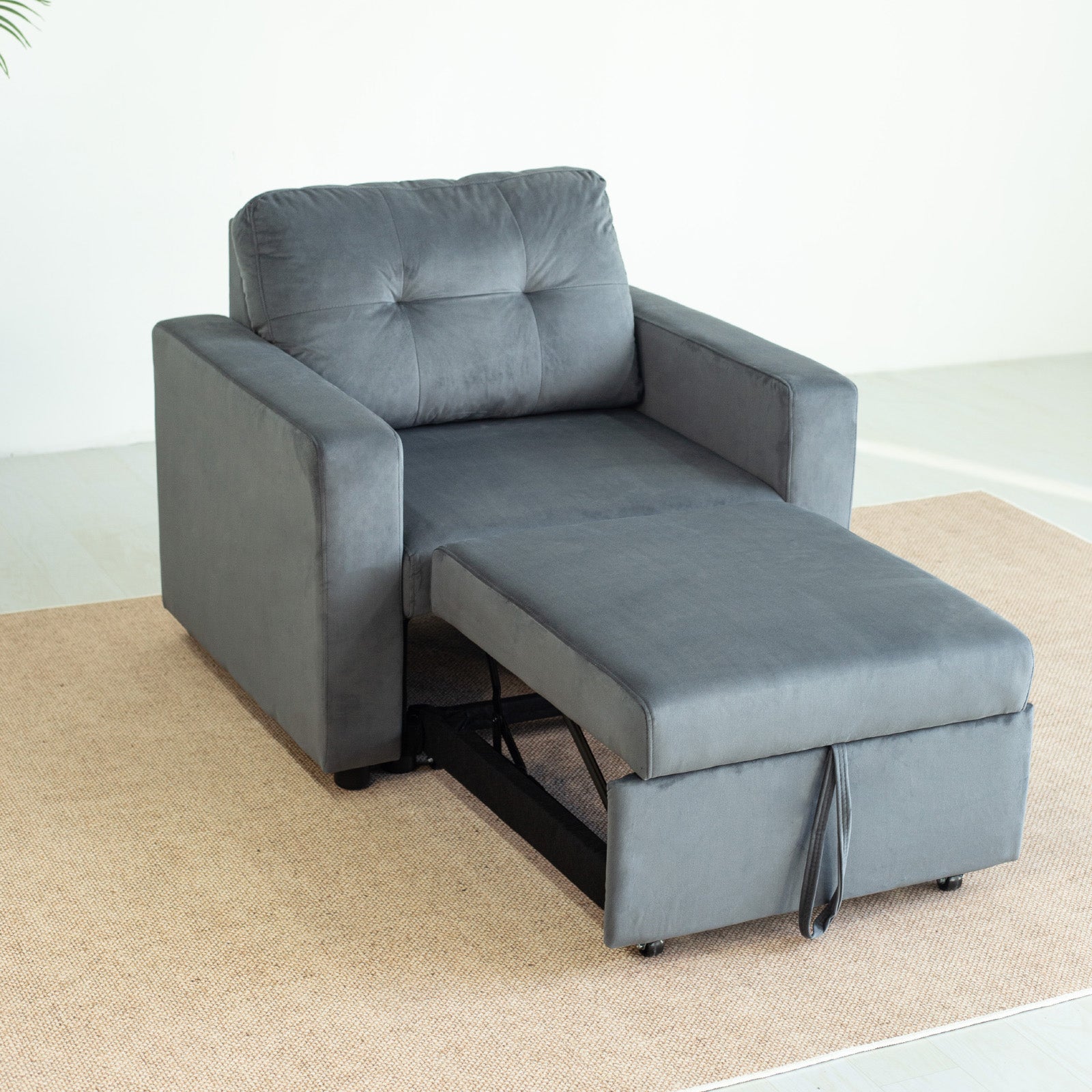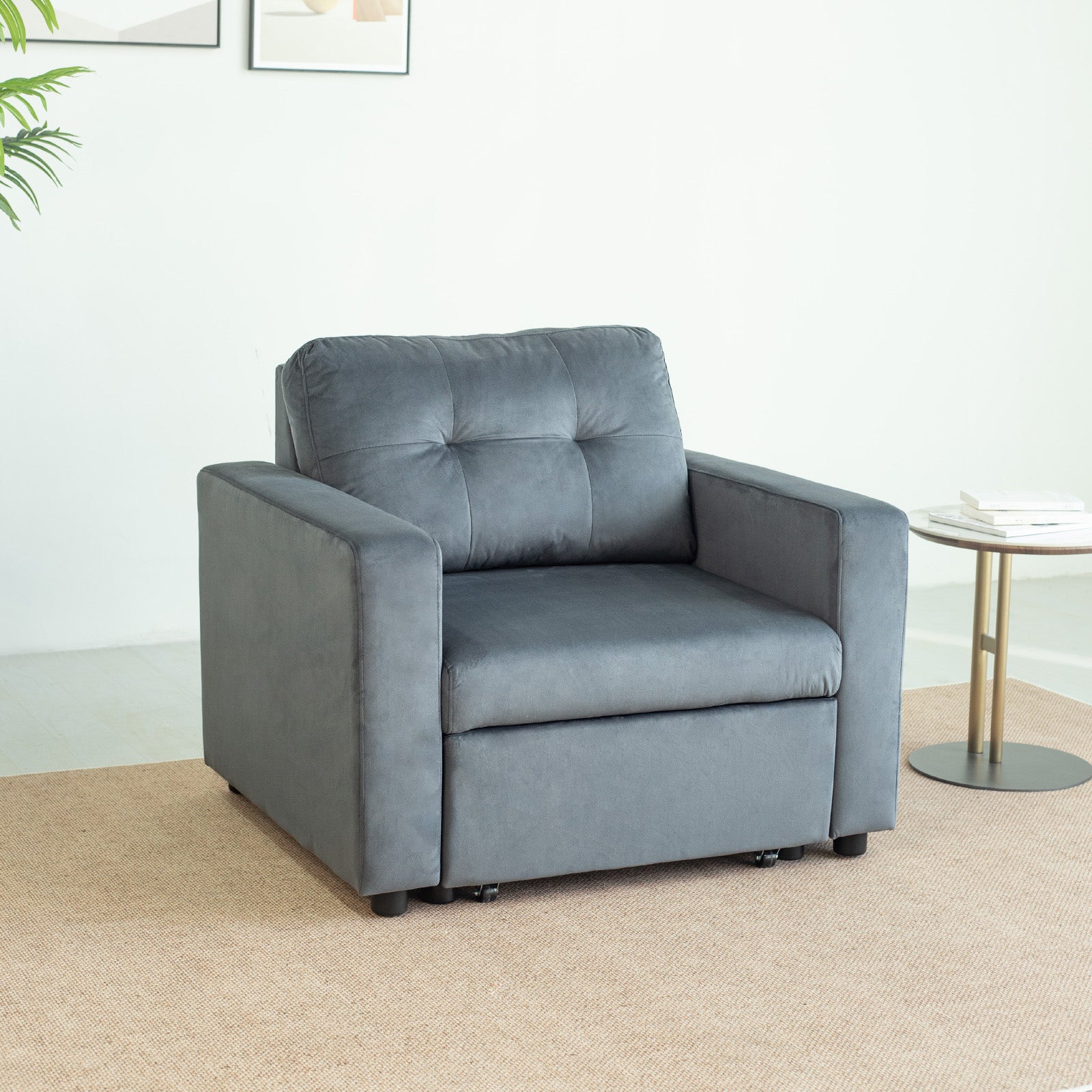 Convertible 1-Seater Sofa Bed – Tufted Backrest in Linen or Velvet