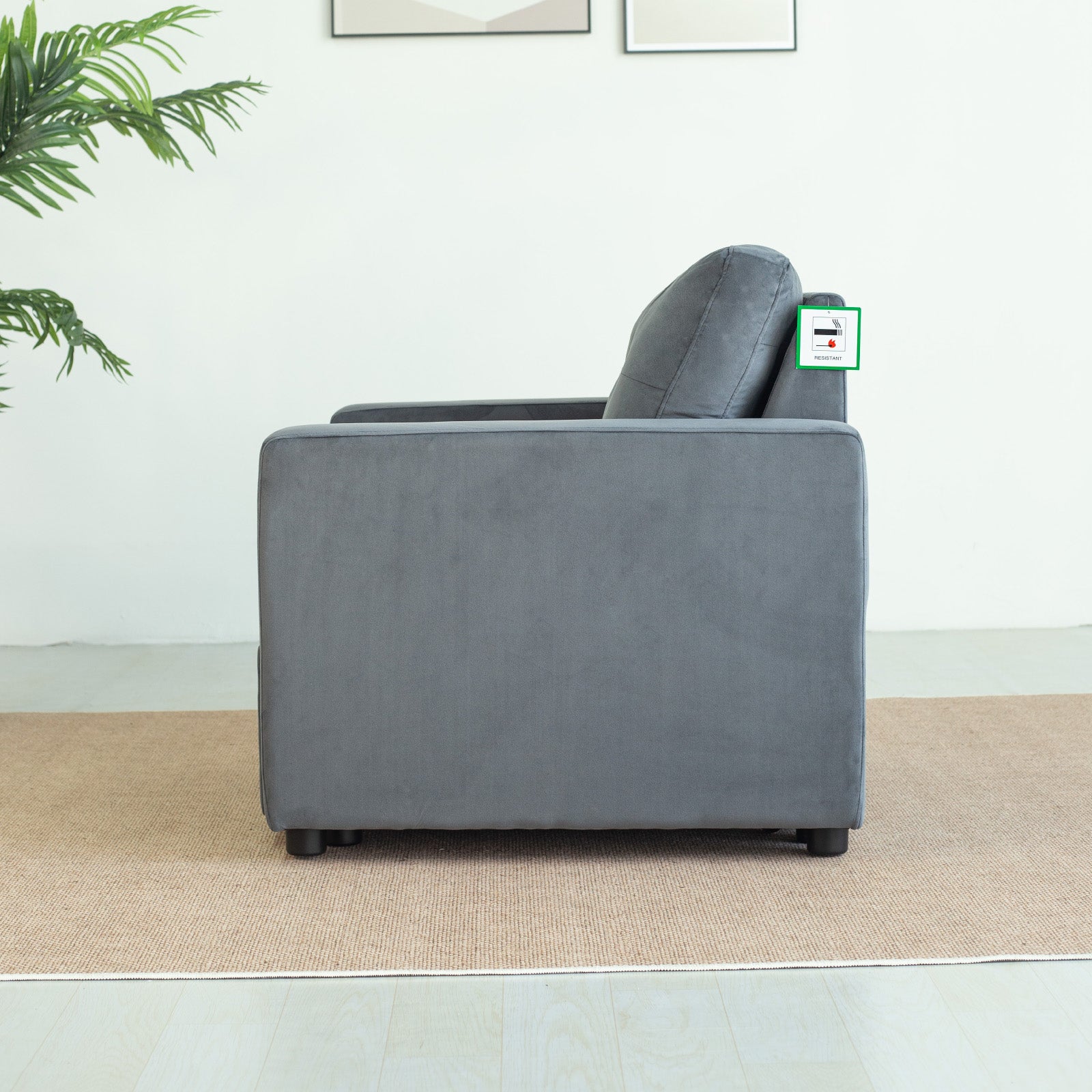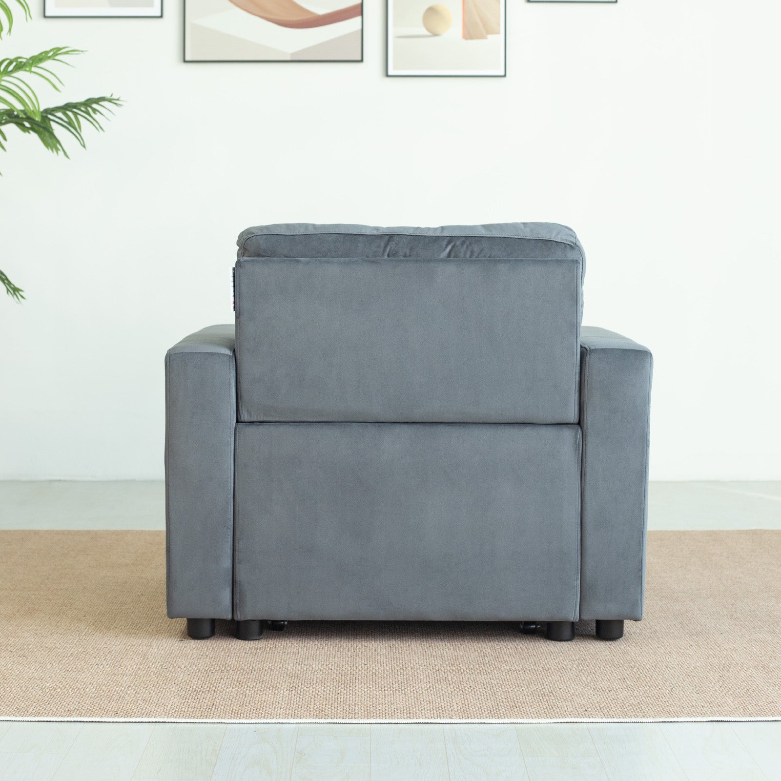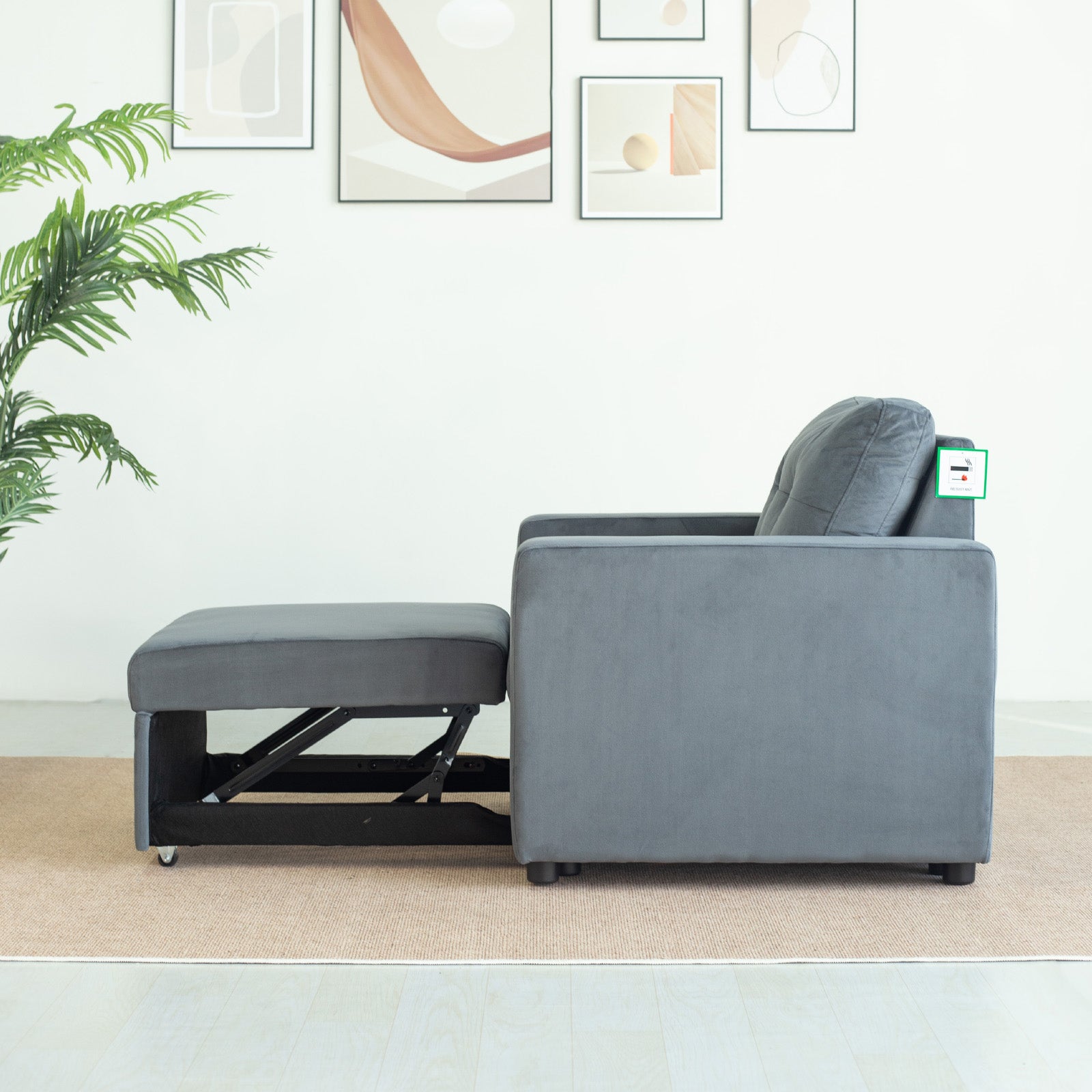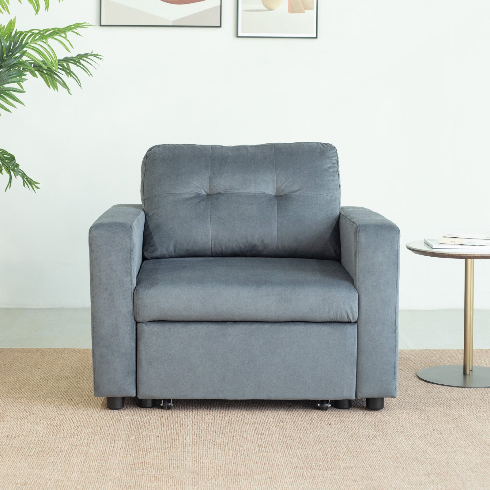 Convertible 1-Seater Sofa Bed – Tufted Backrest in Linen or Velvet