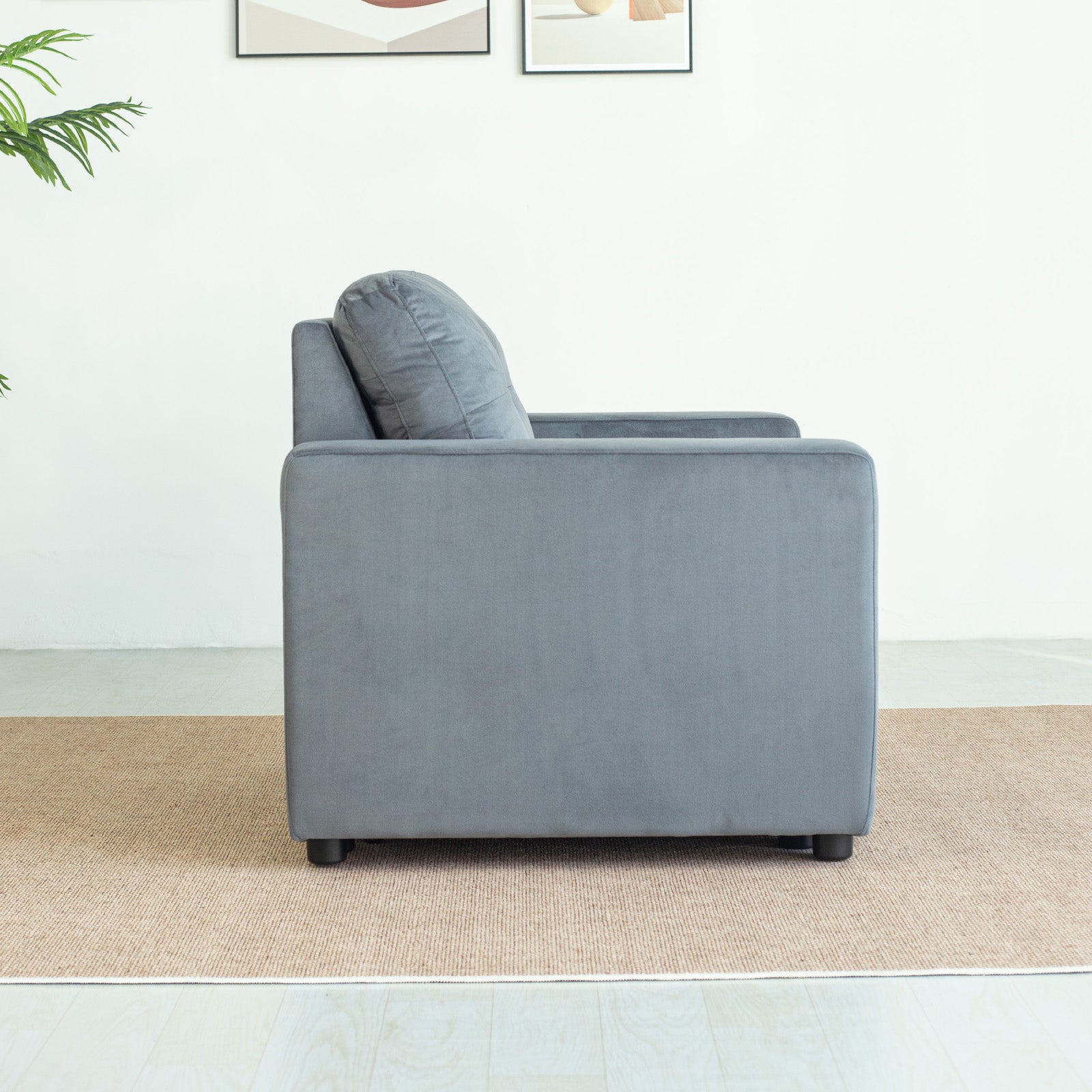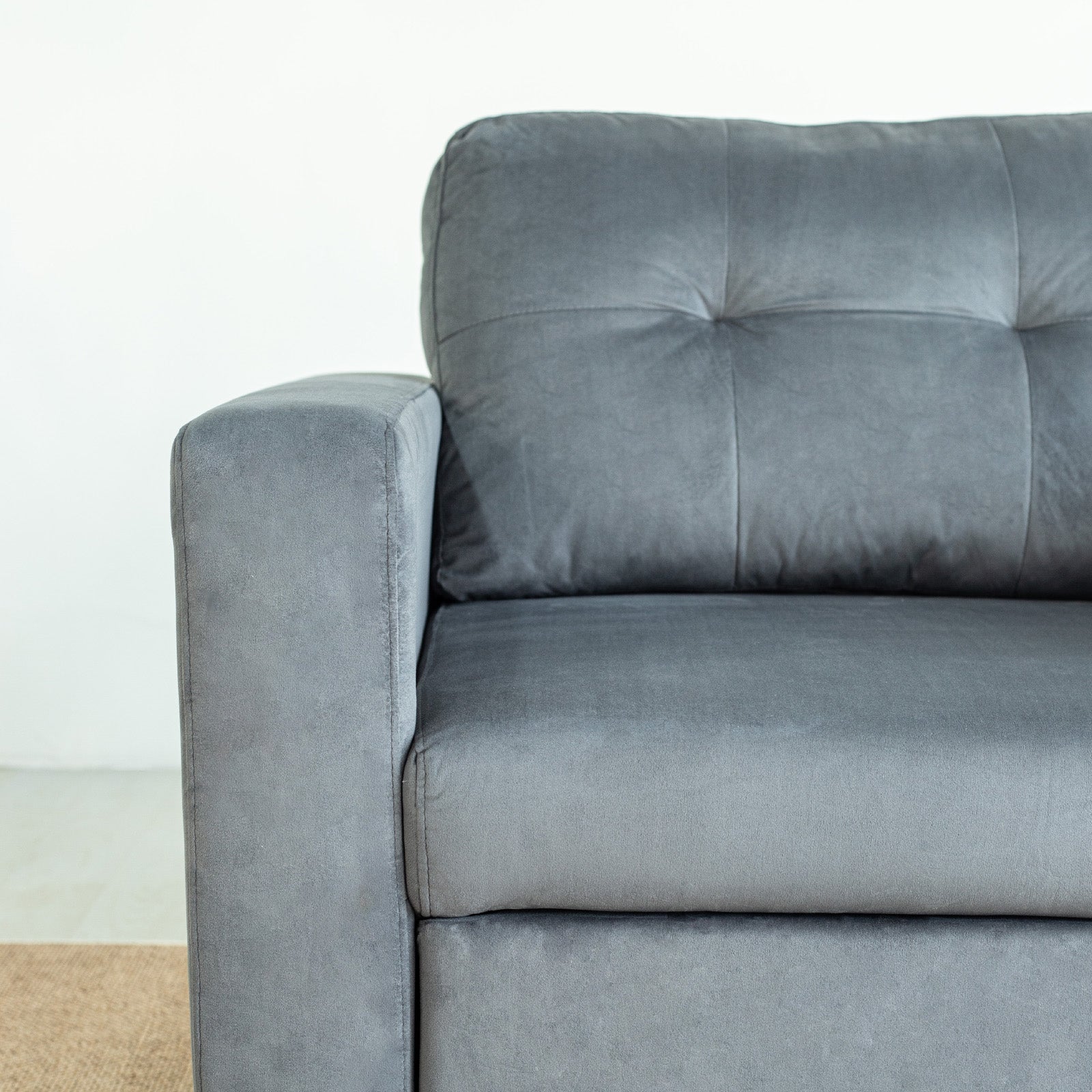 The generously sized seat and tufted backrest add a modern touch, while the sturdy wooden frame ensures long-lasting durability. Need a quick sleep solution? This sofa effortlessly converts into a comfortable bed, making it ideal for overnight guests or a cheeky afternoon snooze.