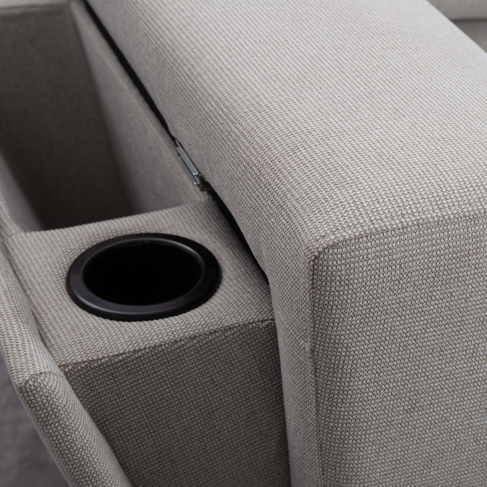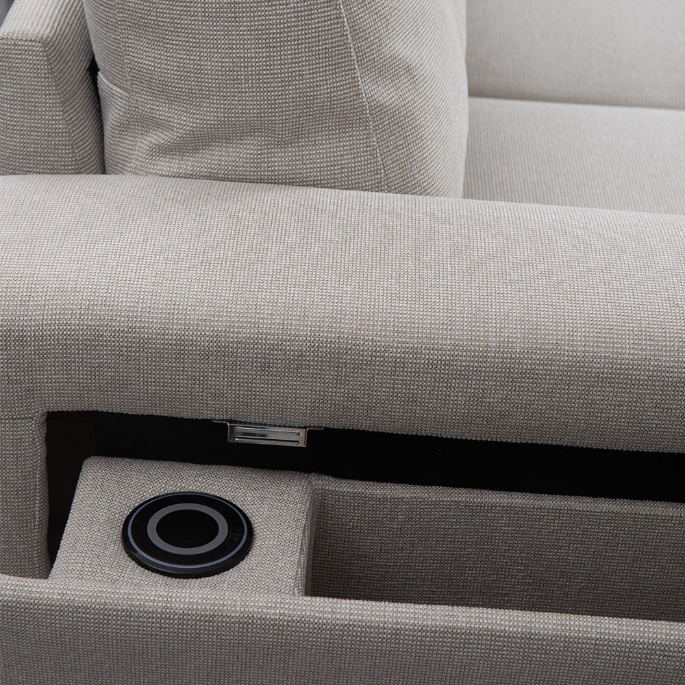 The modular sectional chaise sofa offers exceptional versatility and comfort, designed to adapt seamlessly to your living space. The chaise can be switched between the left or right side without being restricted by the armrest position, ensuring flexibility for any room layout. Crafted with materials, it features a sturdy wood frame and cushions filled with a blend of foam and down, delivering a soft and supportive seating experience. The cupholder and wireless charge station provide the convenience and improves the sense of technology. The sleek design complements contemporary interiors, making it an ideal centerpiece for relaxation or gatherings. With its combination of practicality, style, and ultimate comfort, this sofa is a suitable fit for modern living.